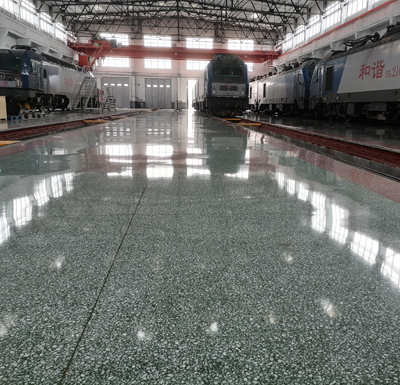 格爾木機(jī)務(wù)段新建年檢修庫(kù)在做高強(qiáng)升級(jí)水磨石定制前,貴段領(lǐng)導(dǎo)在進(jìn)行多方面比較后,對(duì)原有設(shè)計(jì)方案進(jìn)行變更為機(jī)輛高強(qiáng)升級(jí)水磨石地坪。貴段